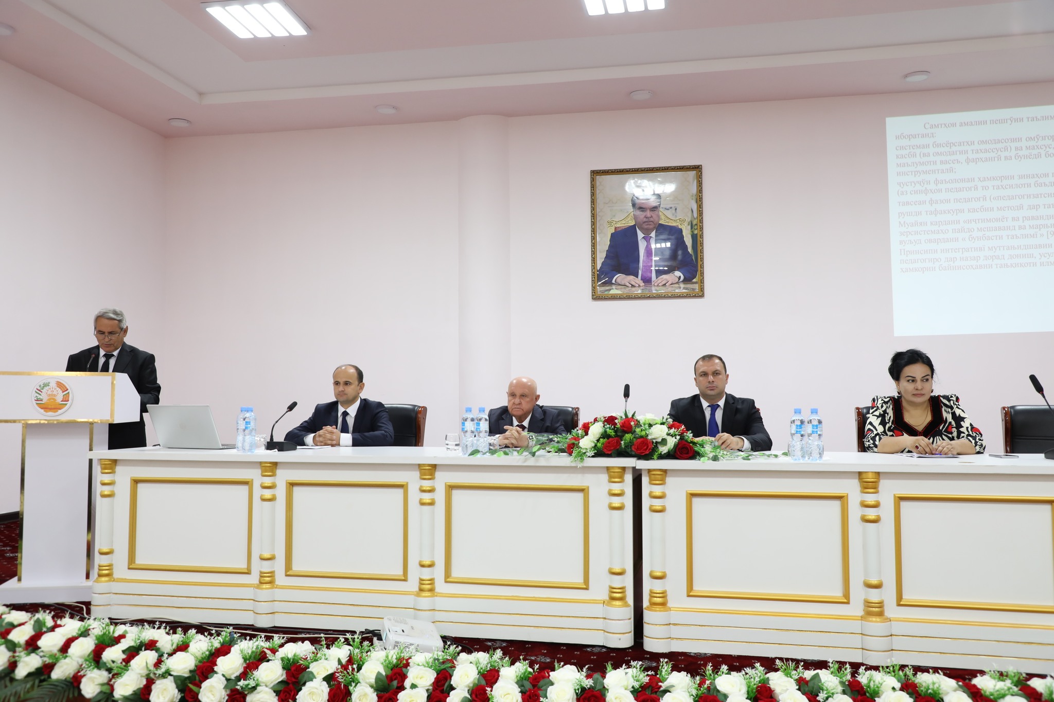 Ректори донишгоҳ, зимни суханронӣ, бо ифтихор ёдовар шуд, ки дар партави сиёсати маорифпарваронаи Асосгузори сулҳу ваҳдати миллӣ — Пешвои миллат, Президенти Ҷумҳурии Тоҷикистон муҳтарам Эмомалӣ Раҳмон, рушди соҳаи маориф ва баланд бардоштани мақому манзалати омӯзгор аз самтҳои афзалиятноки давлат ба шумор меравад. Пешвои миллат омӯзгорро бо эҳтироми олист, ки “шаҳсутуни низоми таълиму тарбия” ва “муқаддастарин касби рӯи замин” унвон дода, таъкид менамоянд, ки бе омӯзгори асилу донишманд, насли соҳибмаърифат ва ҷомеаи пешрафта ташаккул ёфта наметавонад.