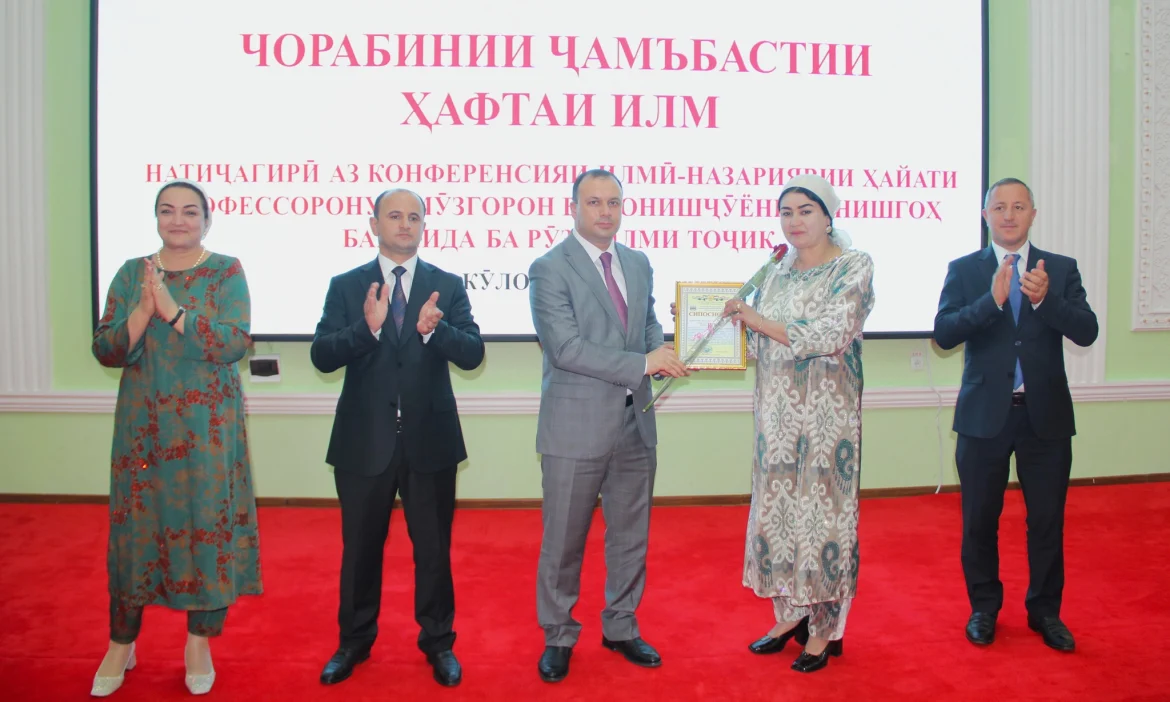Имрӯз, 13.04.2026, дар Донишгоҳи давлатии Кӯлоб ба номи Абуабдуллоҳи Рӯдакӣ дар ҳамоиши бошукӯҳ ва илҳомбахш ҷамъбаст ва натиҷагирии “Ҳафтаи илм”, ки дар доираи конференсияи илмӣ-назариявии ҳайати профессорону омӯзгорон ва донишҷӯён баргузор гардид, сурат гирифт.